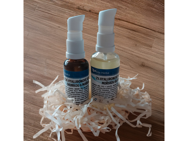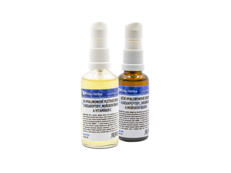 Tento balíček spojuje dvě výjimečná séra s kyselinou hyaluronovou, která zanechají pokožku hydratovanou, jemnou a svěží. Pleťové sérum s růží, mořskou řasou a vitamínem C pomáhá udržet pružnost, regeneruje a chrání pleť před vnějšími vlivy. Oční sérum s mátou, okurkou a mořskou řasou osvěžuje, zmírňuje únavu a vyhlazuje oční okolí. Společně tvoří dokonalou kombinaci pro přirozenou krásu a každodenní péči.